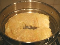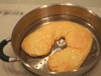 Также формируем второй рулет. Ставим листы на мантоварку с кипящей водой. Готовим 30 минут.