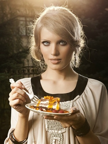 Пока полюбуйстесь одной из готовых фотографий с проекта «Вечеринки Cook4style». Моя любимая модель — Айгеша, бывшая балерина, хороша со всех ракурсов и во всех образах, а здесь она перевоплотилась в настоящую аристократку! А на фото ниже модель Инесса и мраморный чизкейк с облепиховым соусом. Мне нетерпится показать вам весь фотосет!)))