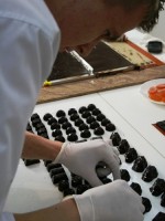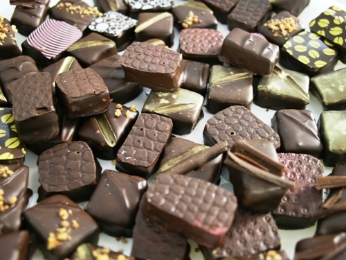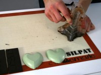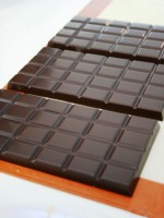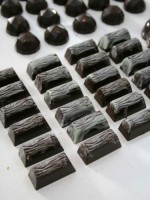Конечно, работали не только с черным шоколадом, но и с молочным, и с белым. И даже с лимонным — на фото, бледно-зеленый. Сырье — сплошное удовольствие — качественное и «некапризное» — Barry Callebaut — бельгийское. Для разных видов шоколада свой режим темперирования. Шоколад — это точная наука!