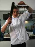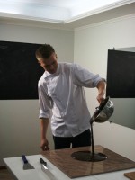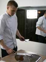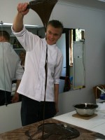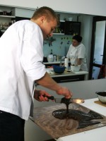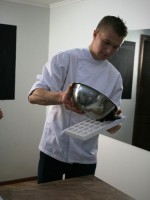 Сначала пару слов о самом шоколадном ГУРУ, человеке, который целых три дня демонстрировал тонкости работы с шоколадом. Великолепный Вольдемар (но мы его величали Володей) — высокий, стройный блондин (и почему все кондитеры, которых я встречала, такие красавцы?!!!))))