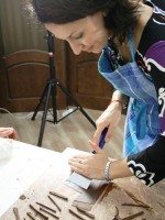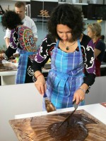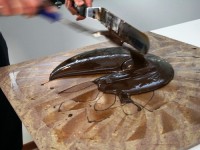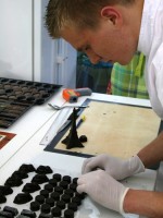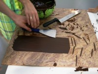 Кроме конфет Володя показал как рисовать шоколадом и как делать «шоколадные сигарки». Мы дружно взялись практиковаться — у меня вышло много шоколадной стружки)))). А что? Для украшения торта очень даже симпатичненько)))).