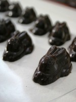 Кроме конфет с начинкой мы залили простые шоколадные плитки + плитки с орехами и изюмом. Эйфелеву Башню…. А еще наваяли небольшой отряд шоколадных зайцев.