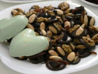 Про круглые конфеты с орешками — они называются МАДЖАН — их во Франции раньше подавали бедным — деньги человек пропьет, а калорийная конфета придаст сил.