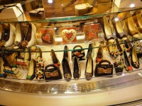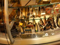 Ниже фото, которые сделали специально для данного репортажа на Cook4style. Если вы внимательно приглядитесь, то на витрине кроме туфелек различного фасона, увидите и шоколадные сумочки… Что еще может пожелать стильный кулинар в подарок?