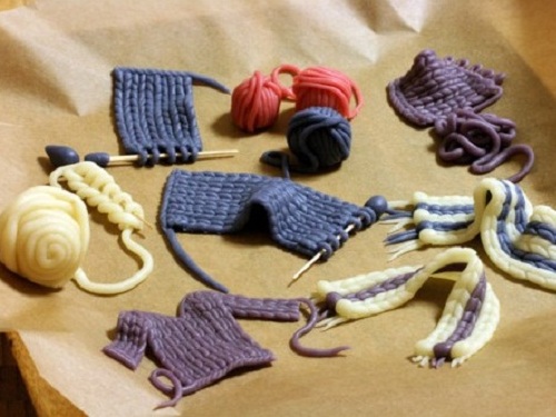 На изготовление вязаных поделок из марципана, подкрашенного пищевыми красителями ушло 4 часа.