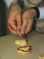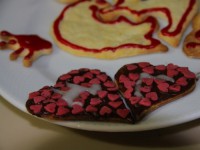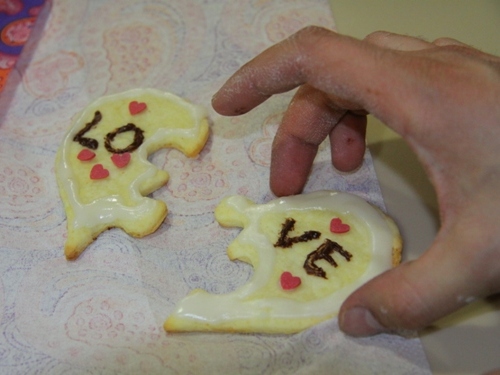 В подарок необходимо было вложить печенье-сердечко. Я решила, что можно поэкспериментировать с довольно нейтральным тестом на основе творожного сыра. Готовое печенье украсили цветной сахарной глазурью.