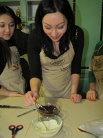 Мы готовили шоколадные тарталетки с кремом из белого и черного шоколада, по этому рецепту.