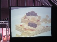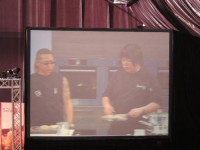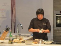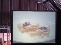 Зато нам удалось попасть на мастер класс известного шефа Alvin Leung из Гонконгского ресторана Bo Innovations (этот ресторан имеет 2 звезды Мишелина, между прочим))). Его стиль работы очень похож на Heston Blumenthal с его уникальной молекулярной кухней. Уверена, что вы слышали о Хестоне и его невероятных экспериментах. The Fat Duck – это его ресторан в Великобритании, где он преподносит необычные блюда вроде каши со вкусом улиток))). Но вернемся к Alvin Leung. Он показал как приготовить хлебный тост со вкусом риса с курицей (этот рис является национальным блюдом в Сингапуре, плюс еще kaya jam & pandam листья). Дополнительно суфле с крабом и чили (тоже в духе традиционных блюд Сингапура).