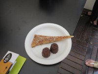 Только послушайте – картофельно-облепиховое мороженое с солодом (Sea buckthorn potato ice cream with malt) Казалось бы, звучит неаппетитно, но мороженое с картофелем мне понравилось. Прекрасная презентация – шарик упакован как ядро в белый шоколад, а вокруг, я предполагаю, стружка их печенья. Было вкусно!