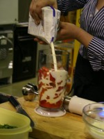 Возвращаем к готовке. Заключительный этап — соусы к рыбным рулетикам. Первый — на основе болгарского перца. Второй — сливочный.