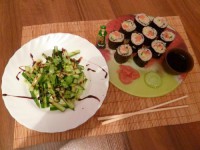 Зеленый салат и роллы