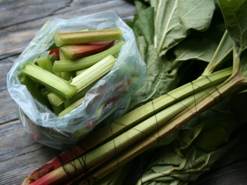 Мне удалось таки подговорить свою знакомую тетушку, торгующую узбекскими помидорками и зеленью, купить и отложить для меня ревень. Так, в среду я стала обладательницей пяти красивых ревеневых «букетов».