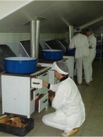 Фрукты для варенья «Бабушкин секрет» собираются вручную. Процесс производства – очень трудоемкий, требует настоящего мастерства и знания традиций и кулинарных секретов. Как вы можете видеть на фото, сделанных на заводе — печи топятся настоящими дровами, варенья варят в больших медных тазах, разливается варенье вручную…