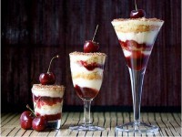 Вторая вкусняшка — легкий летний десерт со взбитым творогом. На дно фужера укладываем столовую ложку молотого печенья, затем творожный крем (200 мл сливок взбиваем с мягким однородным творогом), затем идет чайная ложка варенья… Слои можно повторить… Украшаем свежей ягодой!