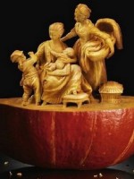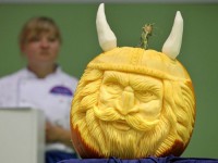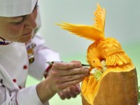 В международном употреблении оно давно стало обозначением художественной резьбы по самым разным материалам, по дереву, мылу, льду, камням и конечно овощам и фруктам.