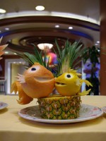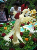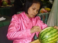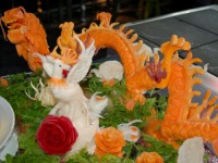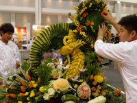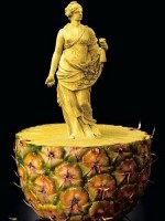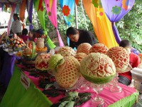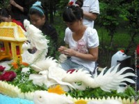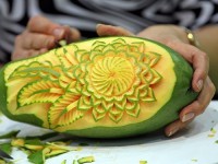 Тайская школа совершенствуется в цветочных мотивах, а китайские мастера традиционно вырезают из фруктов мифических существ, сцены из легенд и народных сказок.