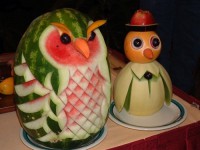Искусство карвинга по фруктам и овощам возникло на Востоке и за тысячи лет стало частью национальных традиций. Но если резьба по дереву или камню сохраняется веками, то мастер по карвингу в ресторане работает с живым материалом, фруктами и овощами и такое не долговечное произведение искусства ДОСТОЙНО не меньшего ВОСХИЩЕНИЯ.