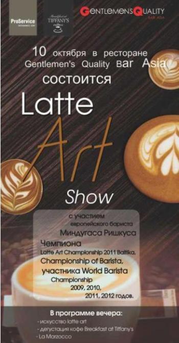Latte art, «молоко» + «искусство» — это особый способ вливания вспененогомолокавэспрессо, благодаря чему на поверхности кофесоздаются различные узоры. Также узор может быть создан путём простого рисования на верхнем слое пены, например зубочисткой или другим острым предметом. Латте-арт требует чёткого соблюдения пропорций молока и кофе.