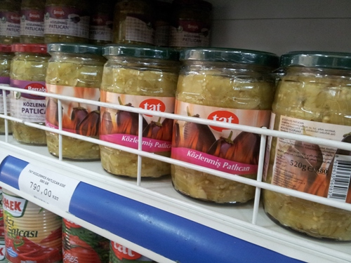 И еще одно наблюдение — консервированные печеные баклажаны. К сожалению, не купила и не могу поделиться впечатлениями. Но предполагаю, потенциально достойный компонент арабского салатика с кинзой, чесноком и гранатом.