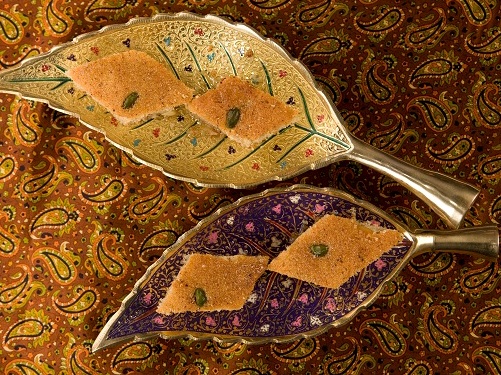 Горячий пирог полить сиропом, дать ему остыть, затем порезать на ромбики.