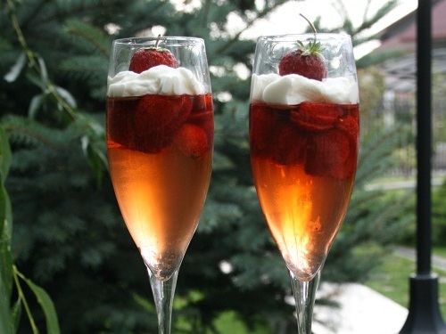 Варианты. Следуя таким же инструкциям можно приготовить желе из шампанского с малиной (1 чашка). А для неалкогольной версии подойдет свежий апельсиновый сок. Такие легкие желе можно подавать и без крема.