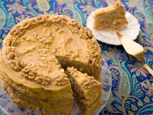 Готовый торт украсить целыми грецкими орехами.