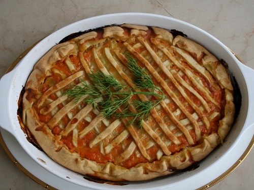 После выпечки такой пирог можно украсить свежей зеленью (см мое ФОТО).