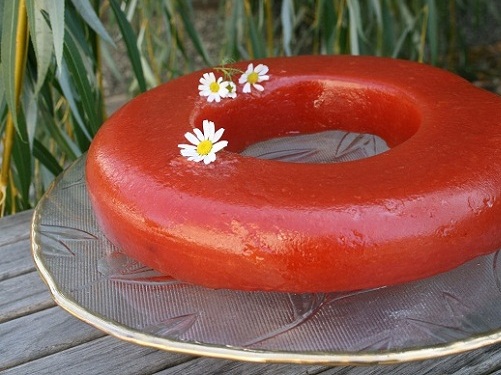 Перелить в кастрюлю с толстыми стенками, добавить сок лимона и варить на очень маленьком огне. Время от времени помешивать, но бурлит и пыхтит эта масса отчаянно, как маленький вулкан (так и норовит извергнуться), поэтому будьте осторожны. За это время желтое пюре айвы начнет густеть и темнеть. Чем дольше варите — тем гуще оно становится, и тем больше будет напоминать при охлаждении мармелад, который можно резать ножом (см. мое фото).