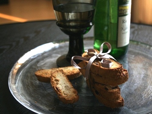 Тесто разделить на 3 части, из каждой сформировать батончики толщиной в 2 пальца. Батончики уложить на противень и смазать слегка взбитым яйцом. Выпекать в течение 25 минут, затем вынуть. Разрезать каждый батон наискось (это традиционная форма кантуччини) и уложить кусочки на противень, как сухари. Снова отправить в духовку минут на 5–10, чтобы печенье приобрело золотистый оттенок.
