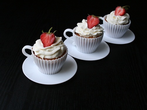 В принципе, уже готово к потреблению, но можно пойти и дальше. Кексы полностью остудить и украсить кремом, взбитым из