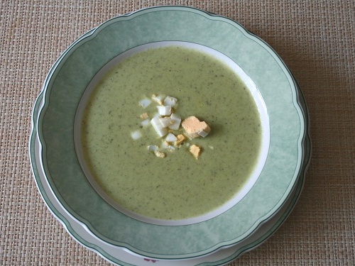 Подавать с гренками из ржаного хлеба, украсить можно рубленым вареным яйцом.