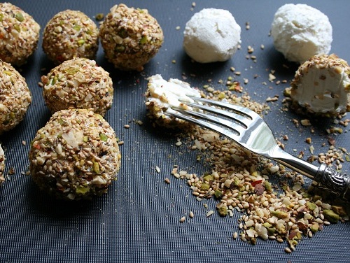 Чтобы было легче скатать шарики, руки слегка протрите оливковым маслом. Сыр можно хранить около недели в холодильнике, если уложить шарики в банку с плотной крышкой и залить оливковым маслом. Но у меня они не лежат — я подаю их в ореховой корочке (она называется дукка), сразу же — к свежему салату из овощей и хлебу.