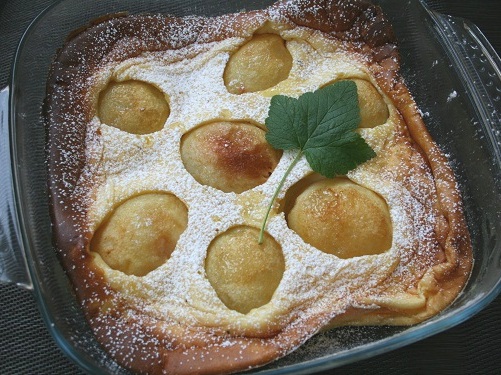 Но, так как нужно угодить всем, а ценители клафути среди моих друзей нашлись, я взялась за поиски рецепта. Классическое клафути обязательно с вишней, но в разгар сочных спелых абрикосов, смородины, малины и всего остального, можно попробовать любые вариации. У меня нашлись «пушистые» белые персики))). Как я адаптировала рецепт? Уменьшила количества яиц (в классическом десерте около 4–5 яиц, разные комбинации белков и желтков, для меня это многовато) и муку заменила на крахмал (чтобы масса уселась более плотно). Еще однажды попробовала добавить молотый миндаль, в результате орехи вобрали часть жидкости — и предстала прямо таки манная каша…))) не понравилось…