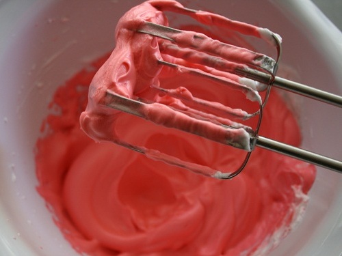 Добавлять порошок в крем нужно постепенно, взбивая его миксером, через несколько секунд цвет начнет равномерно распределяться. Целый пакетик дает очень насыщенный, яркий оттенок.