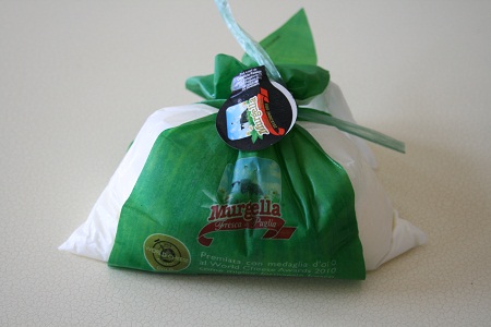 Еще один факт — сыр имеет очень маленький срок хранения. Лучше всего его вкушать в течении 24 часов с момента производства (в крайнем случае, 48 часов). У нас такую возможность можно получить в Argento Wine Bar (Алматы), который имеет регулярные поставки самых разнообразных деликатесов и всегда оповещает о поступлении бурраты. Как удобно…)))) И если вы решили побаловаться данным деликатесом на собственном званом ужине, то сыр вам продадут прямо в упаковке, вот в таком мешочке…