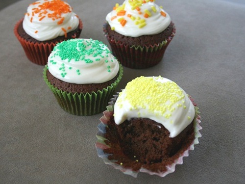 Конкурс маффинов продолжается и я решила поддержать заданную тему выпечкой капкейков (скажем так, подобных кексиков, но с кремовой шапочкой). Крем можно и не готовить, тогда, безусловно, получается менее калорийно.)))