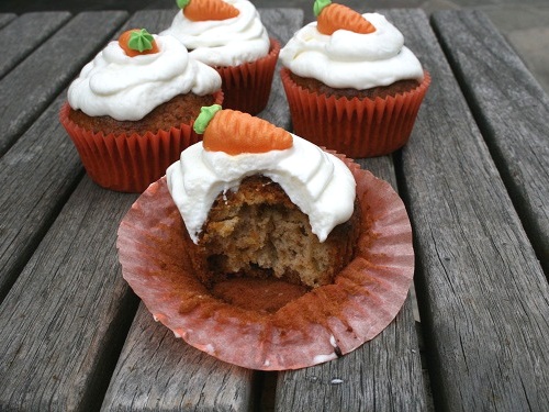 Для тех, кто неравнодушен к морковному торту (carrot cake!)))) и готов принять его в виде всем нам знакомых маффинов-капкейков.