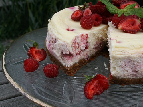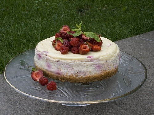 Перед подачей чизкейк нужно украсить свежими ягодами и мятой.
