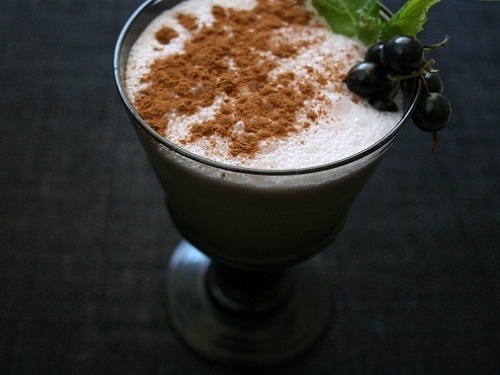 Взбиваем молоко с мороженым и ягодами. Если кому-то несладко, то добавляем ложечку меда!