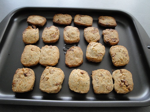 Разогреть духовку до 180С. Готовые колбаски порезать на кружочки и выложить на противень. Печь около 20 минут.