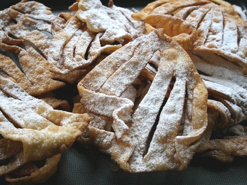 Ставим среднего размера кастрюльку с растительным маслом на средний огонь. Опускаем разделанное тесто (по 1 шт за раз). Жарим с обеих строн. Вынимаем шумовкой на бумажное полотенце, которое впитает излишки жира.