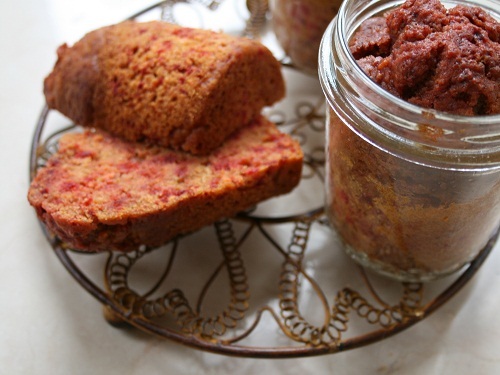 Решилась сама поставить эксперимент. Для этого я выбрала рецепт свекольных кексиков. Банок из под варенья у меня было 5 шт, объемом около 300 гр., с широким горлышком. Если не в банках, то пеките в обычной форме для маффинов (по примеру маффинов с тыквой).