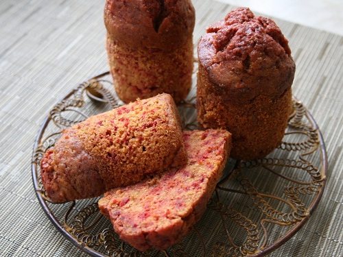 Получаются весьма необычные кексы со свекольным ароматом и потрясающим цветом.