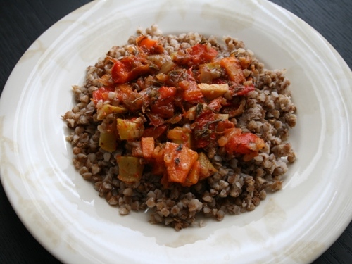 Отвариваем гречку (в альтернативе, пасту, рис или картофель). Сервируем!