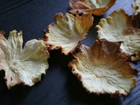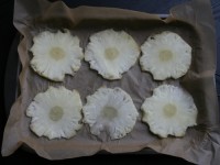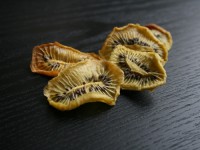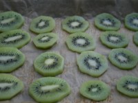 Вдохновленная ананасовыми цветами, я точно также пробовала сушить киви, по такому же принципу. Но результат не впечатлил. См. фото ниже.