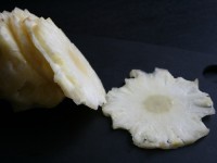 Так как сейчас зима, ананас мне попался бледный, неспелый, несочный, почти как картошка. Но именно эти его качества послужили хорошую службу при сушке, в нем было меньше жидкости.