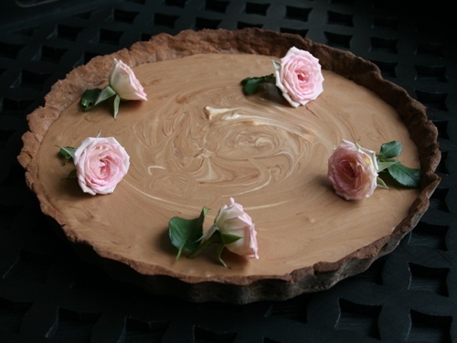 Примечание: для создания мраморного эффекта можно использовать 100 г белого и 100 г черного шоколада. Соединить его со сликами и желтками, поровну, но в разных мисках. Выложить поочередно на выпеченную тарталетку, поводить ложкой, чтобы два цвета смешались в причудливом узоре.