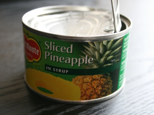 - 1 маленькая баночка консервированного ананаса, в собственном соку (140 г чистый вес=4 ананасовых колечка)