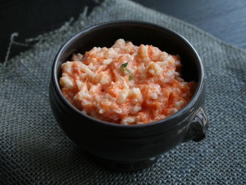 Добавляем соль и сахар. Кладем готовую тыкву и хорошо вымешиваем, чтобы каша стала однородно-оранжевой))). Подать можно с кусочком сливочного масла.