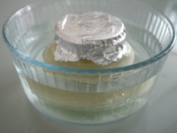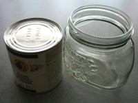 Открываем банку сгущенки и переливаем в банку с толстыми стенками. Крышечку упаковываем фольгой.